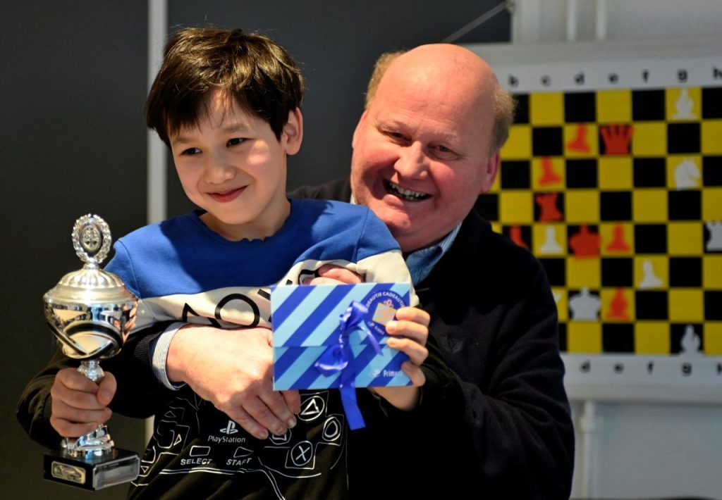 De derde partij won Maurits vrij snel: zijn extra ervaring gaf hier duidelijk de doorslag. In de laatste twee partijen speelde hij gecontroleerd en op zeker, wat resulteerde in twee remises. Daarmee bleef hij ongeslagen en eindigde hij als overtuigende koploper van de poule. Een terechte kampioen: Maurits Hagen speelde stabiel en sterk en verloor geen enkele partij!